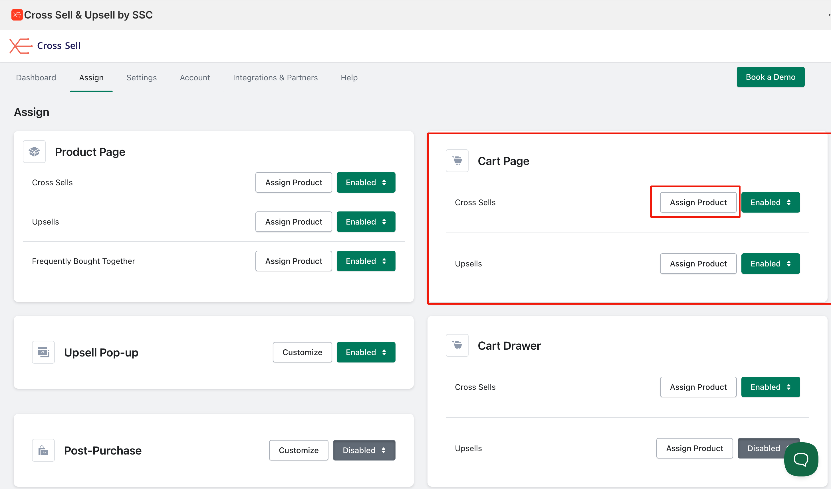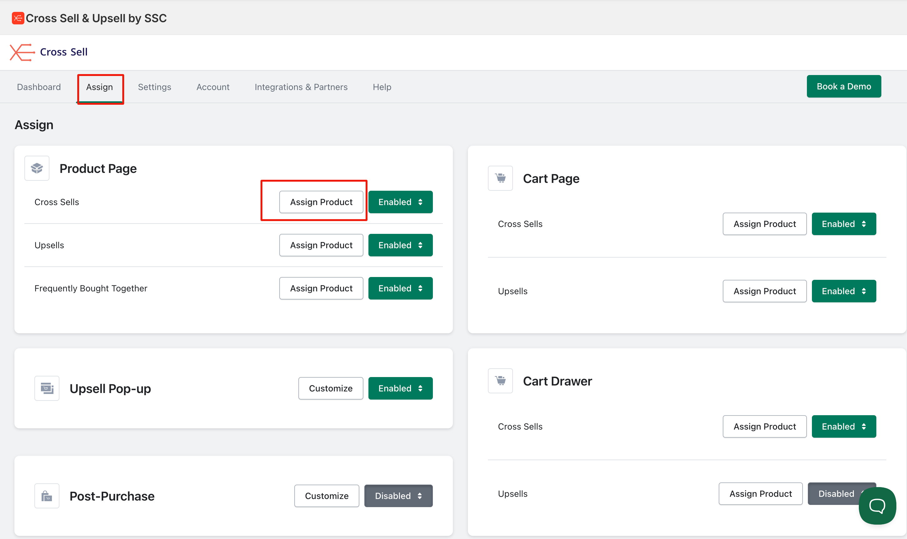 - Go to Assign and click on Assign products button in the Product Page section for Cross Sells.
