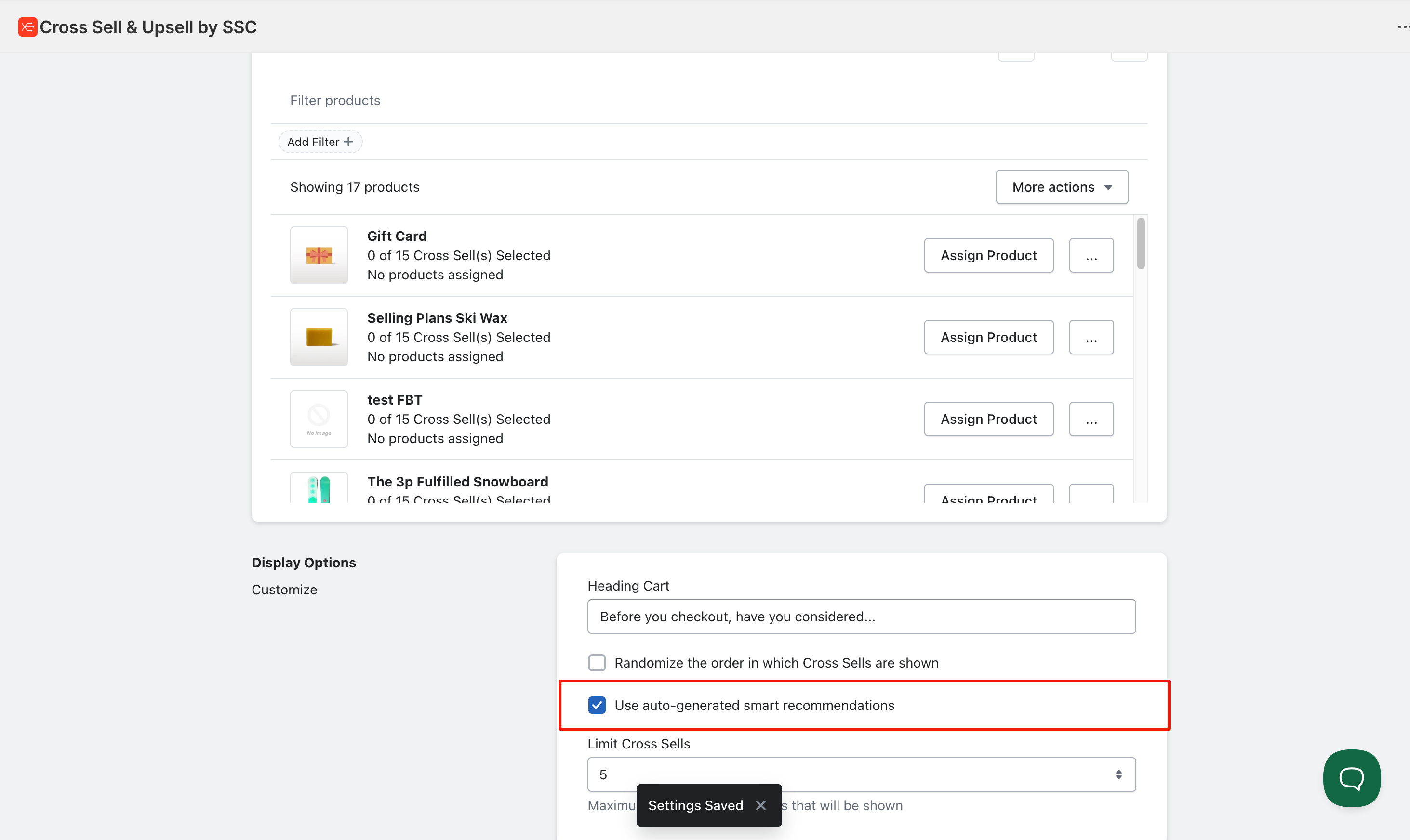 Cross Sell supports smart recommendations, which are based on Shopify's algorithm that predicts the most relevant products based on the product a customer is interacting with. These might be a good option if you: